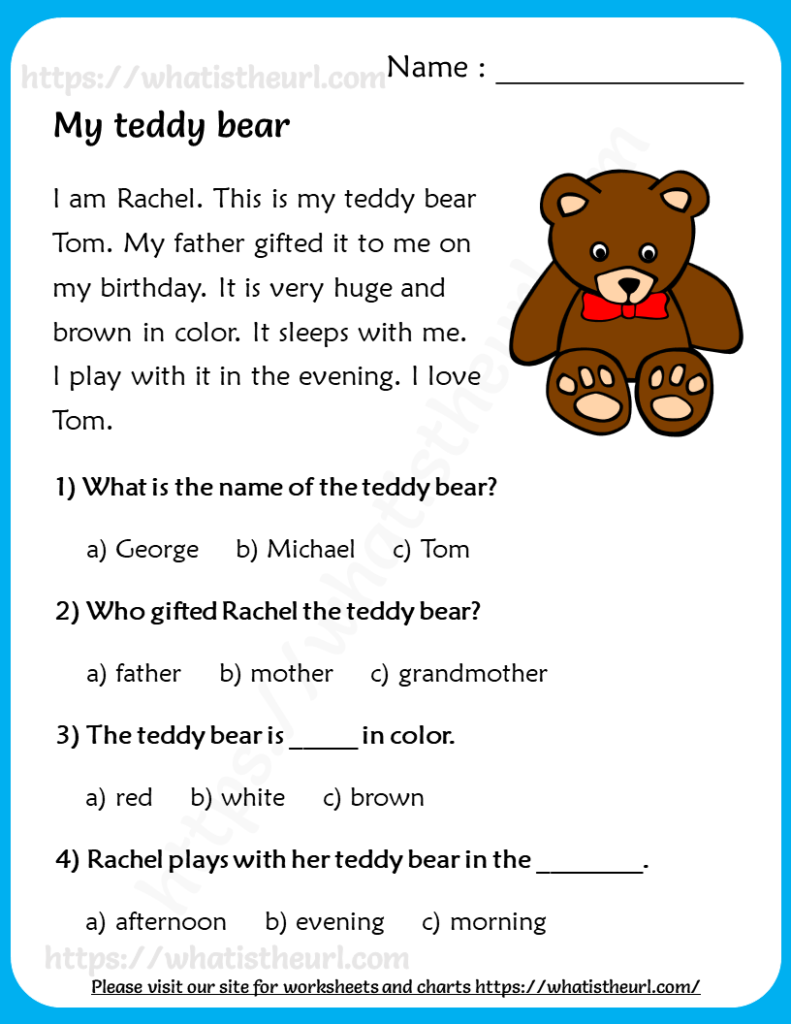 My Teddy Bear Reading Comprehension For Grade 3 Your Home Teacher
