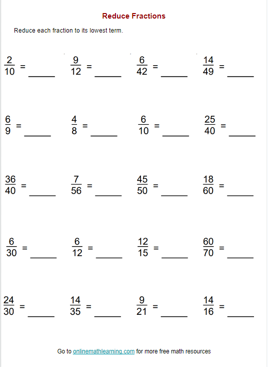 Another benefit of using a reducing fractions worksheet is that it offers a convenient way to practice this skill independently. Whether you’re a student looking to improve your math grades or an adult seeking to refresh your knowledge of fractions, these worksheets can be a valuable resource. You can work on them at your own pace and revisit specific problems as needed.