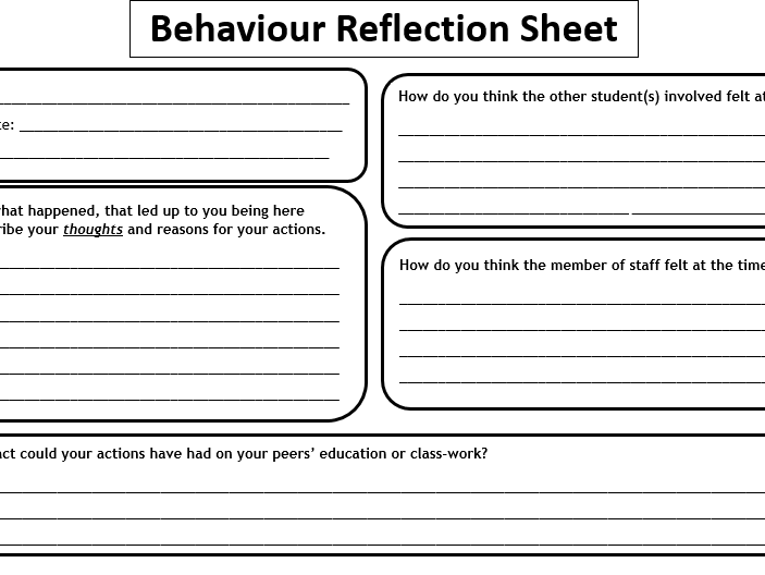 Behaviour Reflection Sheet Teaching Resources