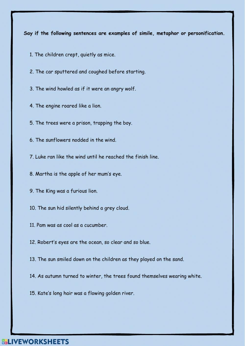 Similes Metaphors And Personifications Worksheet Live Worksheets