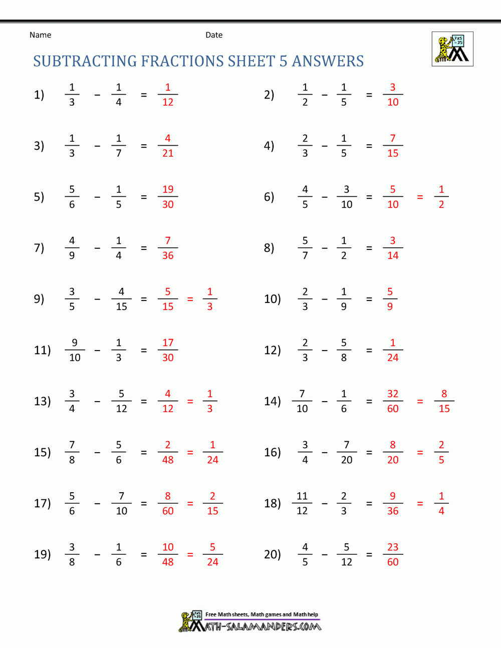 Our subtracting fractions worksheets cover a wide range of topics, including subtracting like fractions, subtracting unlike fractions, and subtracting mixed numbers. Each worksheet is carefully crafted to provide clear instructions and plenty of practice problems to reinforce the concepts being taught.