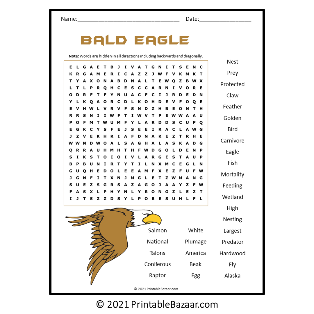 Bald Eagle Word Search WordMint