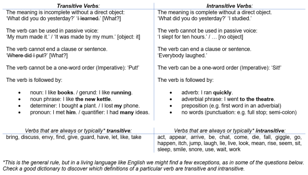 Understanding Transitive And Intransitive Verbs Worksheets With Answers