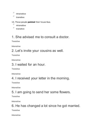 Transitive And Intransitive Verb Answers PDF Verb Object Transitive And Intransitive Verb Answers PDF Verb Object
